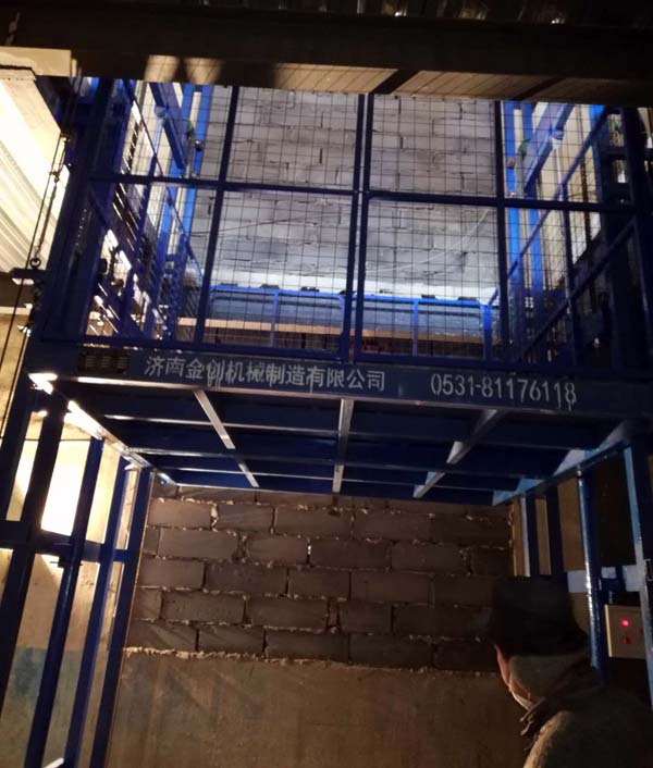 液壓升降貨梯生產(chǎn)制造廠家-濟南金創(chuàng)機械制造有限公司,為威海客戶定做的升高13米,載重5噸的導(dǎo)軌鏈條式液壓升降貨梯,嚴(yán)寒天氣下,經(jīng)過安裝師傅加班加點的努力,昨天下午通過了客戶方的驗收工作。