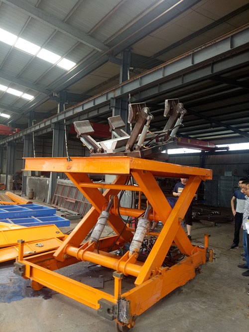 臺(tái)面加設(shè)軸承固定剪叉式液壓升降平臺(tái),適用于流水生產(chǎn)線
